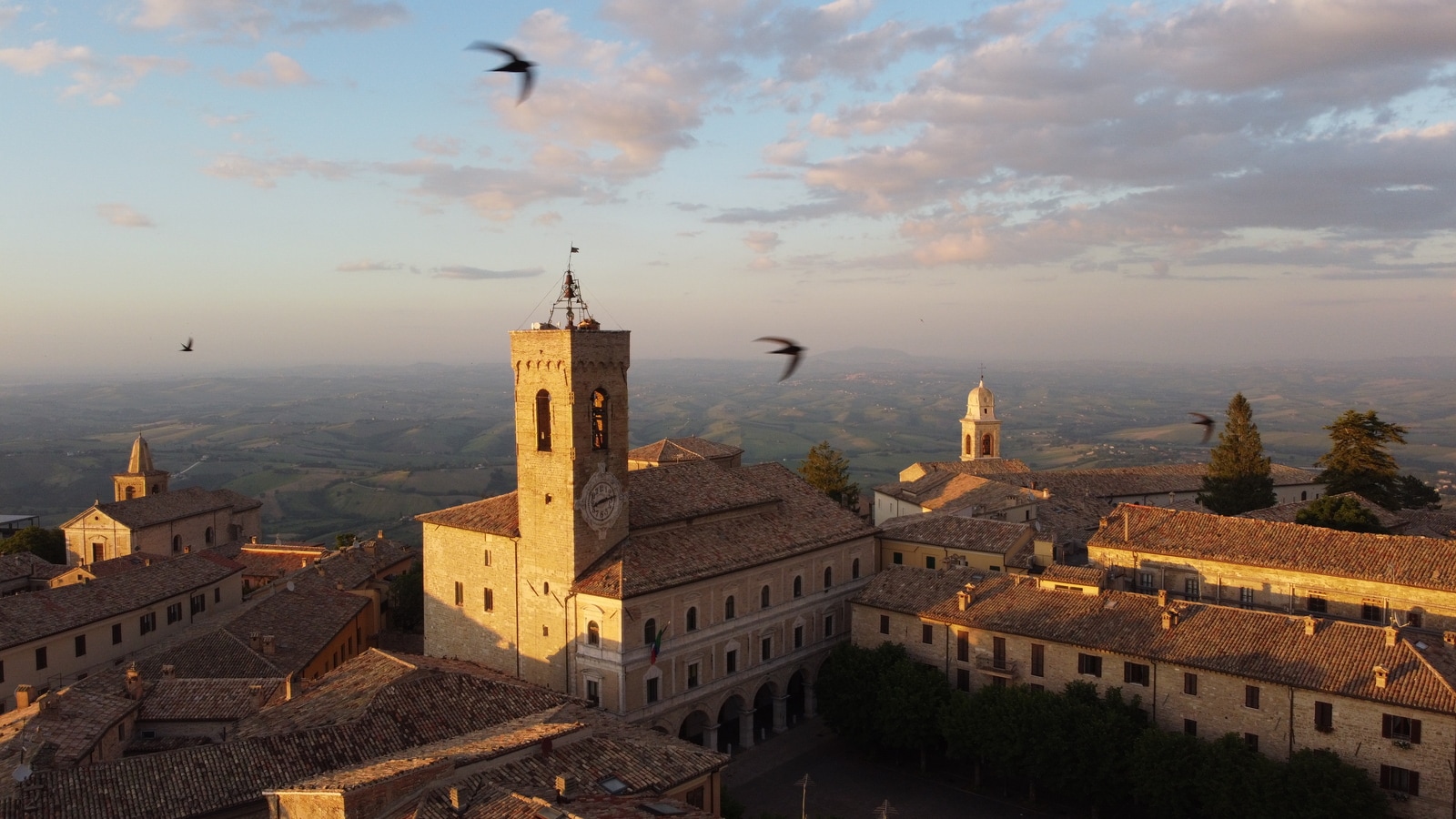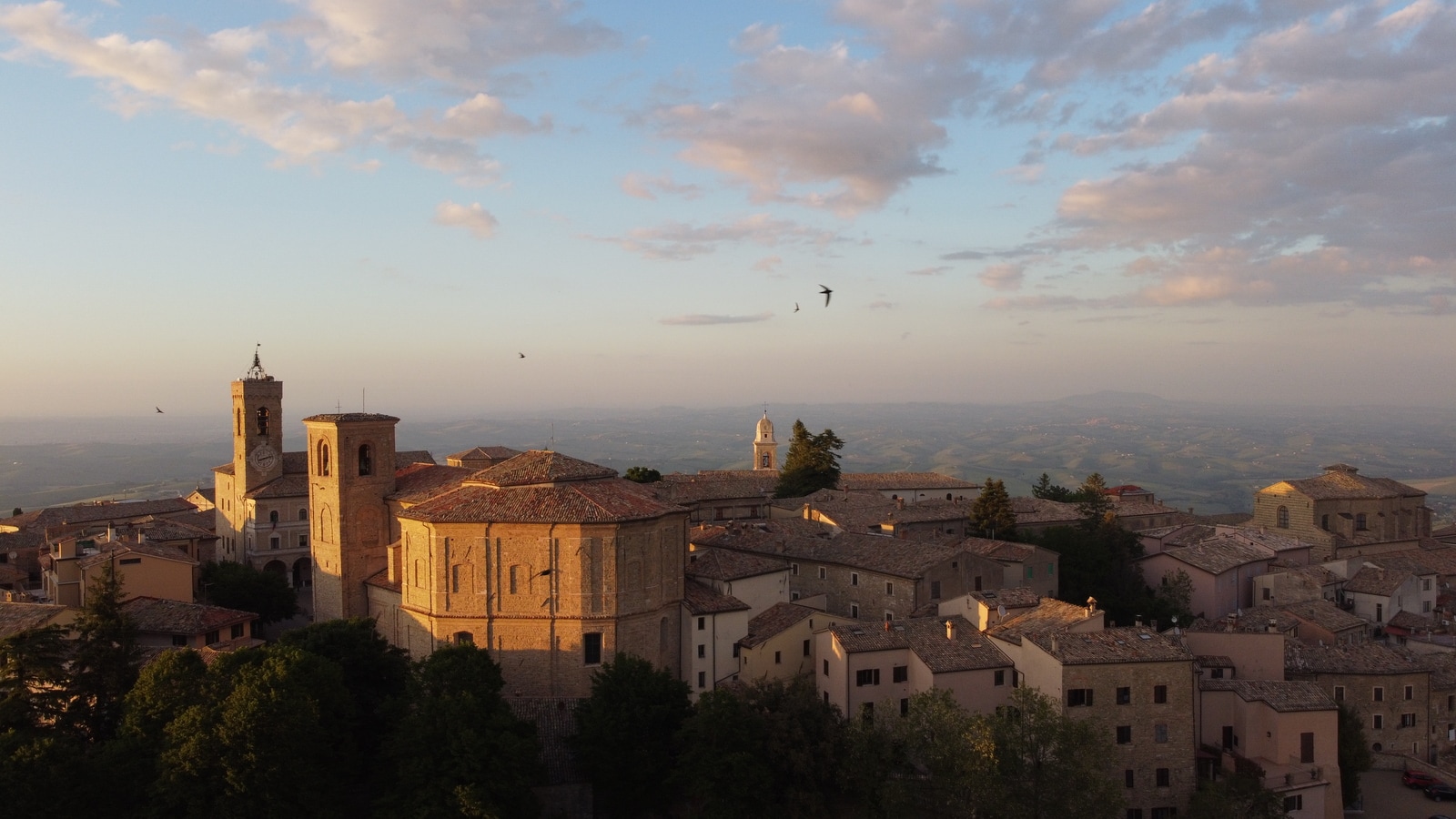 Cingoli (631 m s.l.m.), soprannominata il “Balcone delle Marche” per la sua straordinaria posizione panoramica, sorge sul versante orientale del Preappennino marchigiano, affacciata sull’alta valle del Musone. Immersa in uno dei paesaggi floristici più ricchi e rari dell’area mediterranea, la città offre nelle giornate più limpide una veduta che abbraccia quasi l’intera regione Marche, spingendosi fino alle montagne della Dalmazia oltre l’Adriatico. Il pittore Donatello Stefanucci, autore di una celebre veduta conservata nella Pinacoteca comunale, la descrisse come una “posizione incantevole” dai “panorami sconfinati”. Un antico mito di fondazione lega la sua eminenza topografica a un ancestrale culto solare collegato ai nomi di Picus e della maga Circe.