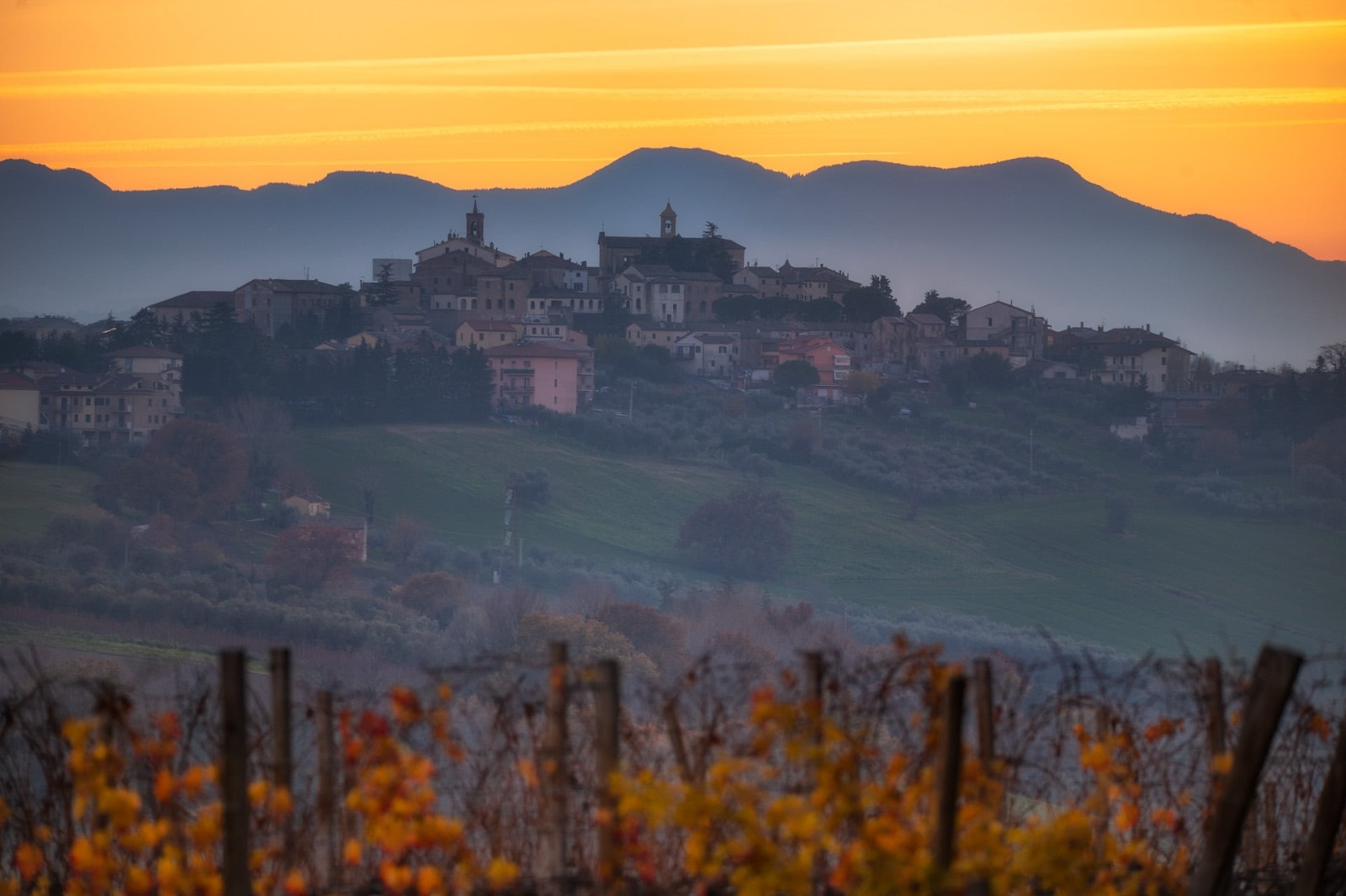 Morro d’Alba, affascinante borgo inserito tra i “Borghi più belli d’Italia” dal 2019, sorge a 199 metri sul livello del mare, tra le valli dei fiumi Misa ed Esino, nel cuore delle colline marchigiane. Il toponimo “Morro” deriva probabilmente dal termine murr, che significa altura o roccia, mentre l’appellativo “Alba” fu aggiunto dopo il 1862. Le più antiche tracce di presenza umana risalgono all’epoca paleolitica e neolitica, e nella frazione di Sant’Amico fu rinvenuto nel 1894 il celebre Medaglione di Teodorico, unica effige a conio del re goto, oggi conservata al Gabinetto Numismatico di Roma.