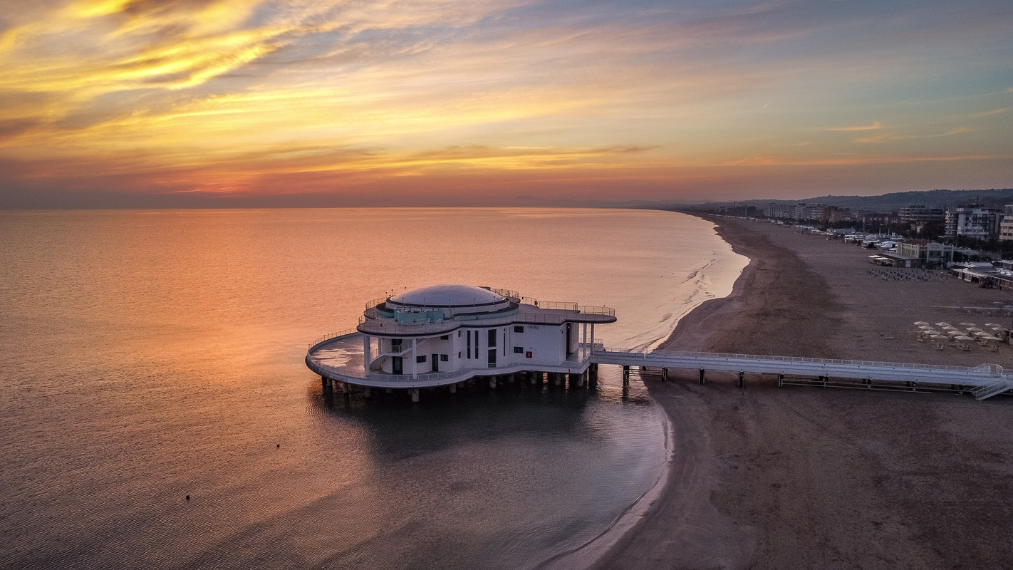 Il simbolo indiscusso della città è la Rotonda a Mare, elegante struttura sospesa tra cielo, terra e acqua, collegata alla terraferma da un lungo pontile. Dalle sue terrazze si ammirano panorami mozzafiato sulla celebre Spiaggia di Velluto, così chiamata per la sua sabbia dorata e finissima, e sul mare cristallino dell’Adriatico.